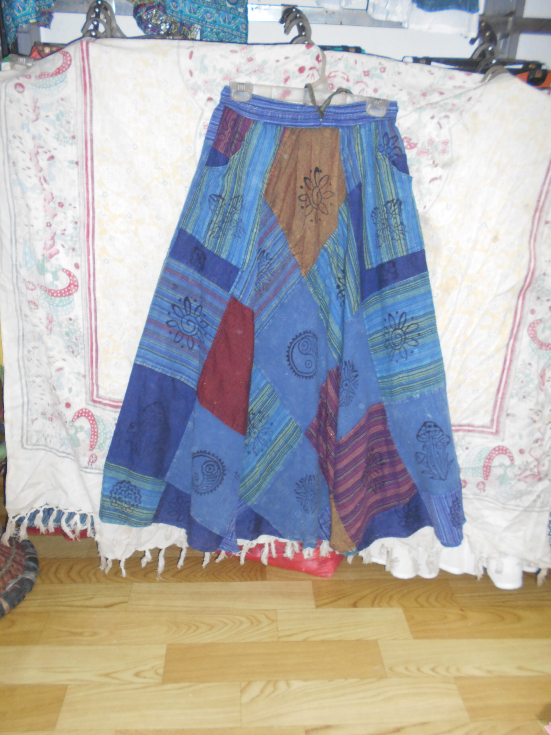 Boho Patchwork Maxi Skirt – Mixed Print Flowy Bohemian Long Skirt SK-07